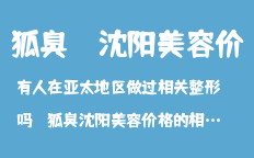 有人在亞太地區(qū)做過相關整形嗎?狐臭沈陽美容價格的相關問題,請回個答案沈陽整形美容關于沈陽腋臭祛除手術價格的文章,為您提供沈陽整形,沈陽整形醫(yī)院,沈陽整形專家,沈陽整形價格,沈陽腋臭祛除手術價格等咨詢…