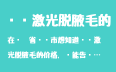 回答:鐵嶺脫腋毛: 鐵嶺脫腋毛價格 2000 - 3000 / 雙側(cè) 鐵嶺激光脫毛價格,鐵嶺整形美容,為您提供鐵嶺整形,鐵嶺整形醫(yī)院,鐵嶺整形專家,激光脫毛價格,鐵嶺脫腋毛價格,鐵嶺女性脫唇毛價格,鐵嶺男性脫胡須價格,鐵嶺大腿脫毛價格,鐵嶺小腿脫毛價格,鐵嶺前臂脫毛價格,鐵嶺脫胸毛價格,鐵嶺脫腹毛價格,鐵嶺面部脫毛價格,鐵嶺比基尼脫毛價格,鐵嶺永久脫毛價格等咨詢