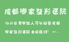 四川省有哪些人可以回答成都哪家整形醫(yī)院去疤痕好?一些問(wèn)題的,特別請(qǐng)積極幫忙留言成都整形美容網(wǎng)是經(jīng)典網(wǎng)旗下四川區(qū)域?qū)I(yè)提供整形美容咨詢,手術(shù)預(yù)約,整形醫(yī)院,整形專(zhuān)家查詢,作為四川地區(qū)最專(zhuān)業(yè)最好整形醫(yī)院加…