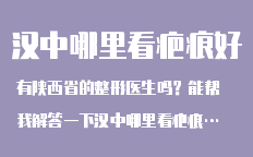 有陜西省的整形醫(yī)生嗎?能幫我解答一下漢中哪里看疤痕好?相關(guān)問(wèn)題嗎?