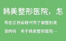 有在江西省贛州市了解整形美容的嗎?關(guān)于韓美整形醫(yī)院,怎么樣的問題,請(qǐng)留言給我!江西韓美整形醫(yī)院是南昌最好的整形醫(yī)院,南昌整形醫(yī)院,江西最好的整形醫(yī)院,經(jīng)典整形項(xiàng)目有改臉型,下頜角,隆胸,假體隆胸,吸脂…