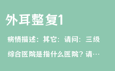其它:請問:三級綜合醫(yī)院是指什么醫(yī)院? 請問:怎樣才能與專家醫(yī)生曹誼林醫(yī)生電話聯(lián)系,詢問病因? 請問:網(wǎng)上掛號一般需要多長時間才能前往進行治療? 請問:做外耳整型手術(shù)需用取孩子本身的肋骨嗎?大概需要多長時間?
