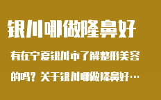 銀川整形美容關(guān)于銀川隆鼻的文章,為您提供銀川整形,銀川整形醫(yī)院,銀川整形專家,銀川整形價格,銀川隆鼻等咨詢