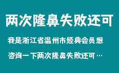 我是浙江省溫州市經(jīng)典會(huì)員想咨詢一下兩次隆鼻失敗還可以進(jìn)行第三次修復(fù)嗎?相關(guān)問(wèn)題?
