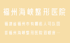 福建省福州市有哪些人可以回答福州海峽整形醫(yī)院雙眼皮一些問題的,特別請(qǐng)積極幫忙留言雙眼皮手術(shù)讓很多單眼皮女生的眼睛綻放出了光彩,但有的人做了雙眼皮后并沒有變好看。事實(shí)上,雙眼皮手術(shù)是一項(xiàng)要求極高的整形藝…