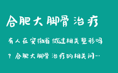 合肥整形美容關(guān)于合肥祛大腳骨手術(shù)價格的文章,為您提供合肥整形,合肥整形醫(yī)院,合肥整形專家,合肥整形價格,合肥祛大腳骨手術(shù)價格等咨詢 |