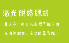 我人在廣西百色市想了解下激光脫絡(luò)腮胡,有誰(shuí)能幫我解答下嗎?類(lèi)別項(xiàng)目單位價(jià)格備注說(shuō)明優(yōu)惠激光脫毛價(jià)格男性脫胡須價(jià)格全腮4800元左右申請(qǐng)優(yōu)惠>>…