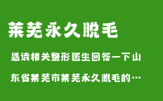 懇請相關整形醫(yī)生回答一下山東省萊蕪市萊蕪永久脫毛的咨詢問題萊蕪整形美容關于萊蕪永久脫毛的文章,為您提供萊蕪整形,萊蕪整形醫(yī)院,萊蕪整形專家,萊蕪整形價格,萊蕪永久脫毛等咨詢…