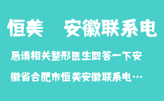懇請相關整形醫(yī)生回答一下安徽省合肥市恒美安徽聯(lián)系電話的咨詢問題合肥恒美整形醫(yī)院是合肥最好的整形醫(yī)院,合肥整形醫(yī)院,安徽最好的整形醫(yī)院,經(jīng)典整形項目有改臉型,下頜角,隆胸,假體隆胸,吸脂瘦臉,瘦腰腹,瘦…