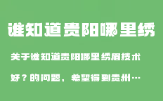 關(guān)于誰(shuí)知道貴陽(yáng)哪里繡眉技術(shù)好?的問(wèn)題,希望得到貴州省貴陽(yáng)市地區(qū)一個(gè)給力的回答。