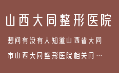 ![]() 大同整形美容關(guān)于大同隆鼻的文章,為您提供大同整形,大同整形醫(yī)院,大同整形專家,大同整形價(jià)格,大同隆鼻等咨詢