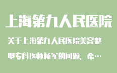 上海九院(上海二醫(yī)大附屬第九人民醫(yī)院激光美容中心)整形專科室是上海最好的整形??剖?上海整形??剖?整形項目有,眼部整形,鼻部整形,頜面整形,胸部整形,吸脂減肥,美容其他