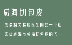 威海整形美容關(guān)于威海包皮環(huán)切的文章,為您提供威海整形,威海整形醫(yī)院,威海整形專家,威海整形價(jià)格,威海包皮環(huán)切等咨詢